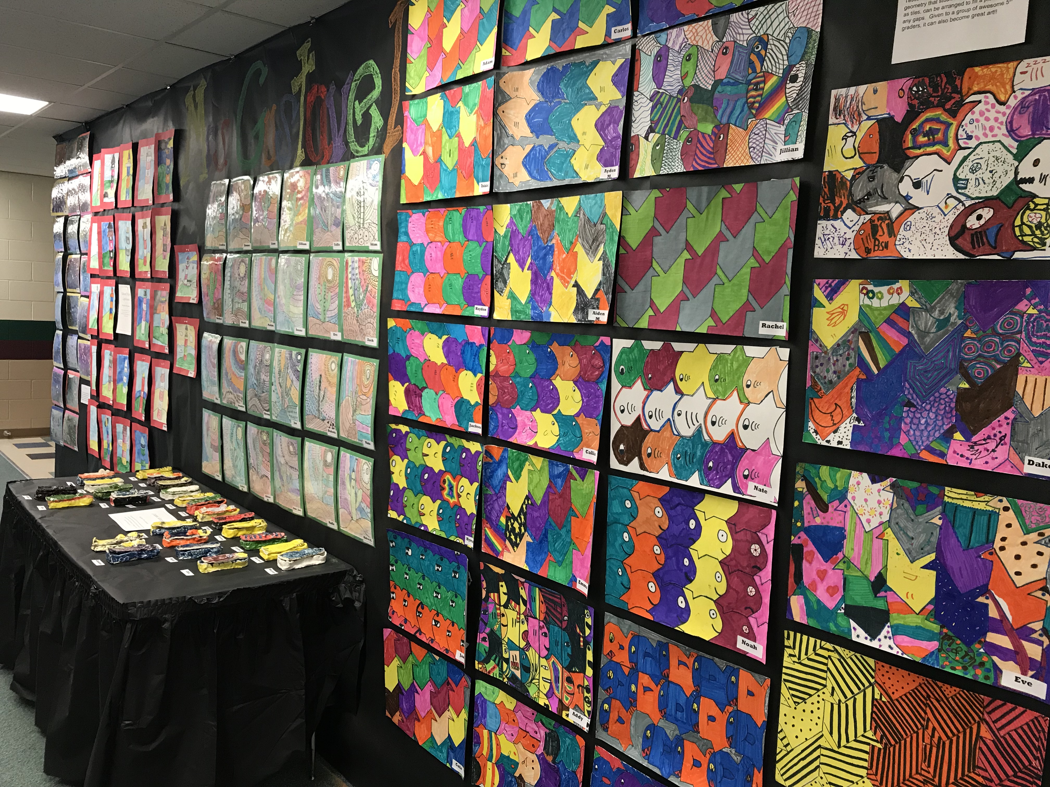 We kicked off the month with the elementary school’s annual art night.  Art night requires no small sacrifice on the part of the volunteer art parents at our school, among others.  Jack and I spent the better half of the week hanging black paper, matting each piece of artwork and hanging it for the students to show off to their parents.  Jack deserves a medal.  So do I (for keeping a toddler reasonably entertained in the hallways of an elementary school for two days straight – I get tired just thinking about it).